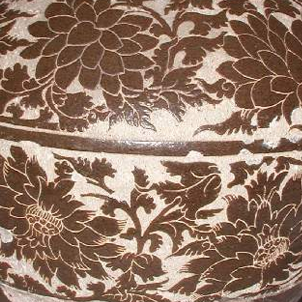 宋代是中国瓷器发展的高峰时期,磁州窑作为著名的民间窑系,创造了丰富多样的装饰技法,剔花就是其中颇具特色的一种。剔花工艺是在施好釉的器物表面,用工具剔刻出花纹,使花纹与底色形成对比,具有独特的艺术效果。宋代社会经济繁荣,市民文化兴起,瓷器作为日常生活用品和艺术品,其装饰题材丰富,花卉纹深受人们喜爱,寓意美好。同时,宋代瓷器大量出口,对世界陶瓷艺术的发展产生了重要影响,成为中外文化交流的重要载体。