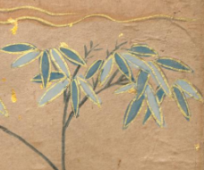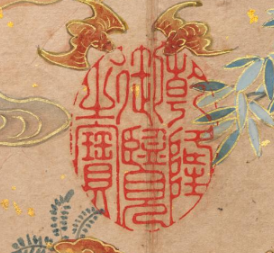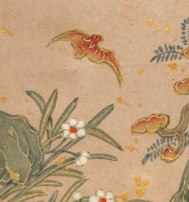 本品规格为14.4 x 20.3 厘米。画面中,翠竹修长挺拔,叶片以清新的蓝绿色绘就,脉络清晰,尽显雅致之态;怪石造型古朴,纹理细腻,与翠竹相互映衬,营造出清幽的氛围。几只蝙蝠色彩鲜亮,灵动飞舞,“蝠” 谐音 “福”,寓意吉祥。还有灵芝、花卉点缀其间,灵芝象征长寿,整体画面通过竹、石、蝙蝠、灵芝等元素的组合,传递出吉祥美好、福寿安康的意蕴,笔墨精致,设色清雅,尽显清代宫廷绘画的艺术特色与文化内涵。