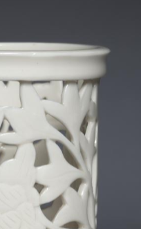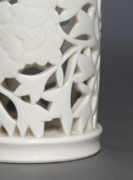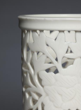 清德化窑白瓷镂空花卉纹笔筒