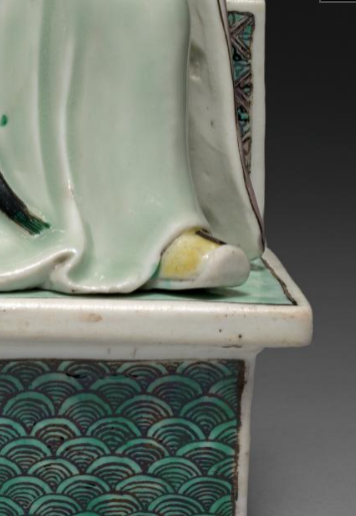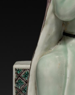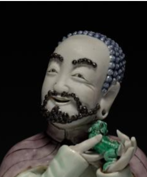 在清代时,罗汉象征着修行有成, 在佛教文化中地位重要。寺庙会将这类瓷塑罗汉像摆放在殿堂等位置 , 供信徒瞻仰、朝拜 。信徒们通过礼拜罗汉像, 表达对佛法的虔诚, 祈愿罗汉保佑平安、消灾解难、启迪智慧。