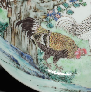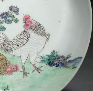 清粉彩鸡纹花卉盘