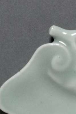 清粉青釉灵芝形笔舔