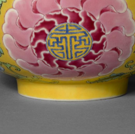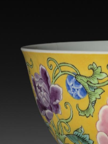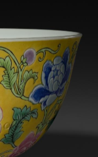 清黄地粉彩花卉寿字纹碗