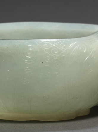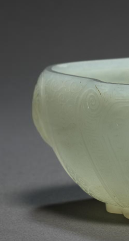本品规格为4.7 x 11.8 厘米。以温润的青玉雕琢而成,色泽淡雅莹润,质地细腻。整体造型呈椭圆状,器身线条流畅柔和。一侧雕琢有生动的兽首,兽首刻画细致,眼部、鼻部等细节清晰,神态灵动,仿佛蕴含着生命力,兽首处还带有衔环的设计元素,增添了器物的精致感与古韵。器身表面雕刻有精美的环纹等纹饰,线条细腻流畅,工艺精湛,既丰富了视觉层次,又彰显出清代玉器雕琢的高超技艺。作为文房用具,它主要用于贮存砚水,其雅致的造型与温润的玉质,不仅满足了实用功能,更兼具艺术观赏价值,是清代文房玉器中的精品,体现了清代对文房器物精致与典雅的追求。