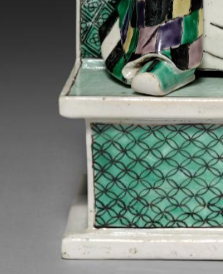 在清代时,罗汉在佛教中代表着修行得道的高僧, 具有超凡的智慧和神力。清五彩瓷塑罗汉坐像常被安置于寺庙的佛堂、罗汉堂等场所 , 供信徒瞻仰、礼拜。信徒通过朝拜罗汉像, 祈求消灾解难、获得智慧与庇佑 , 表达对佛教教义的尊崇和对罗汉修行境界的敬仰 。