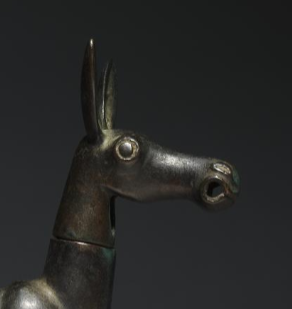 在西汉,青铜器常作为彰显身份和财富的象征,摆放在贵族或富人家中的厅堂、书房等场所。这件青铜马形立件造型精美, 放置于室内,可起到美化环境、增添艺术氛围的作用,展示主人的高雅品味和社会地位 。