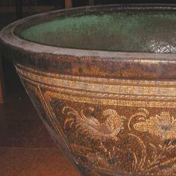 整体造型:敞口,斜腹,底部略收,整体呈盆状,造型规整大气,线条简洁流畅,具有较强的实用性,可用于盛水、养花等。