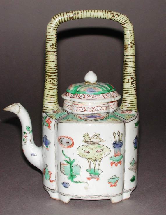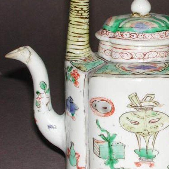 清代是中国瓷器发展的又一高峰,瓷器制作工艺精湛,装饰手法多样。五彩瓷在明代的基础上进一步发展,工艺更加成熟。博古图作为瓷器装饰题材,盛行于清代,它通过描绘古代器物,展现古人的风雅生活,寓意着对传统文化的尊崇与传承。当时,茶文化在社会各阶层广泛普及,茶壶作为重要的茶具,不仅要满足实用需求,在造型和装饰上也愈发讲究,成为了兼具实用功能与艺术价值的工艺品,反映了清代人们的生活情趣和审美追求。同时,清代瓷器大量出口,这类带有中国传统文化元素的瓷器,也成为了中外文化交流的重要载体 。