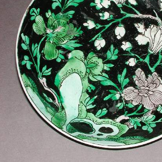 墨地三彩花卉纹盘