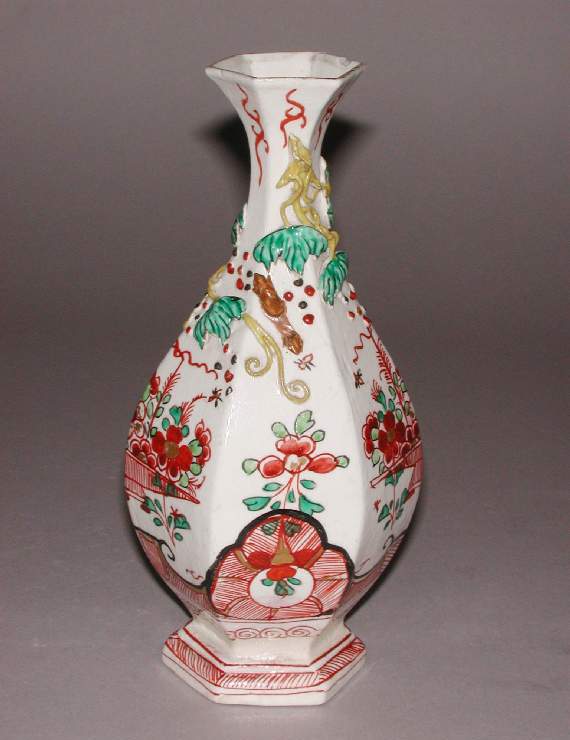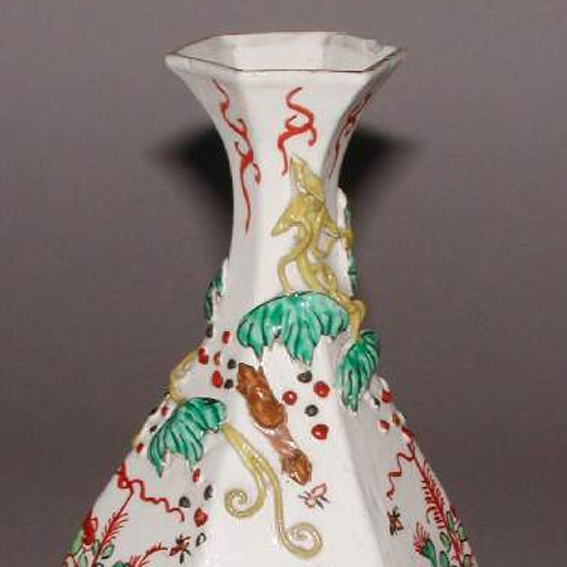 五彩堆塑花卉纹六方瓶