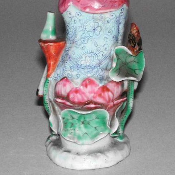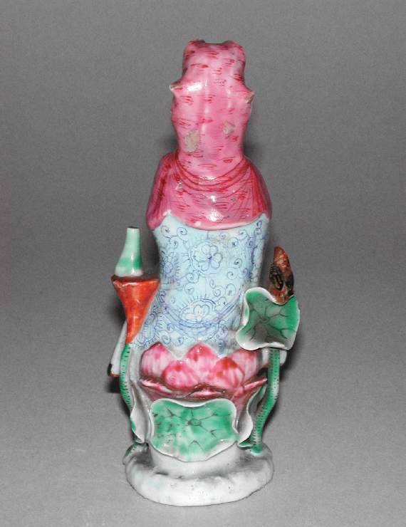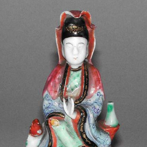 清代是中国瓷器发展的繁荣时期,同时也是佛教文化广泛传播与发展的时期。粉彩工艺在清代达到较高水平,常被用于制作各类佛教造像,以满足宗教信仰与艺术欣赏的需求。观音像作为佛教中的重要形象,深受信众尊崇,此类粉彩观音坐像不仅是宗教供奉的载体,也体现了清代瓷器工艺与宗教文化的融合,反映了当时的社会文化风貌与人们的精神信仰。