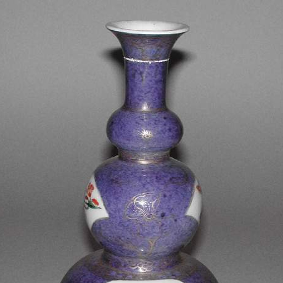 清代是中国瓷器发展的繁荣时期,各种创新工艺不断涌现,洒蓝釉是清代康熙时期创烧的一种釉色,之后也有延续使用。粉彩工艺在清代雍正、乾隆时期达到鼎盛,常用于绘制花鸟等题材,体现了当时人们对自然美的追求与喜爱。葫芦瓶的造型在清代瓷器中较为常见,因 “葫芦” 与 “福禄” 谐音,具有吉祥的寓意,深受人们的喜爱。这件洒蓝釉开光粉彩花鸟纹葫芦瓶融合了洒蓝釉的独特与粉彩的细腻,反映了清代瓷器工艺的精湛与创新,也是当时文化艺术与审美观念的体现。