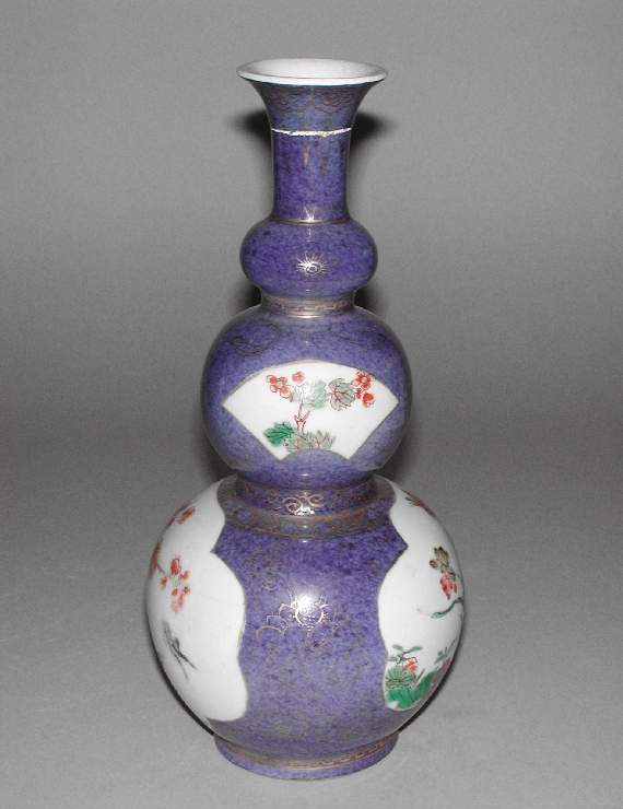 洒蓝釉开光粉彩花鸟纹葫芦瓶