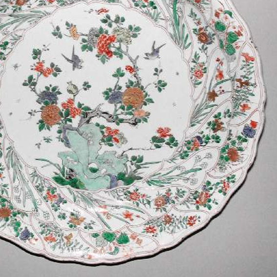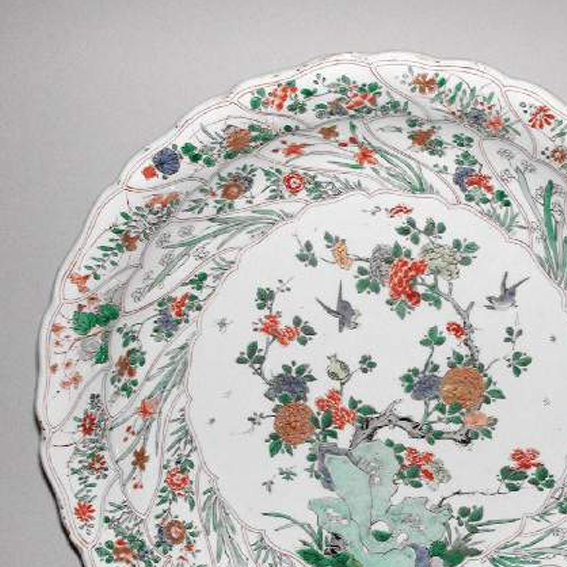 1900 年八国联军攻入北京,大肆抢掠,无论是皇家宫殿、贵族府邸还是民间富户,所藏文物皆难以幸免。这件五彩花鸟纹花口盘或许原是北京某官宦人家的珍贵藏品,在战乱中被侵略士兵发现并抢走,随后被带回欧洲。在欧洲,它可能在私人收藏家之间辗转,也可能经过多次文物交易,最终被剑桥大学费茨威廉博物馆收藏。
