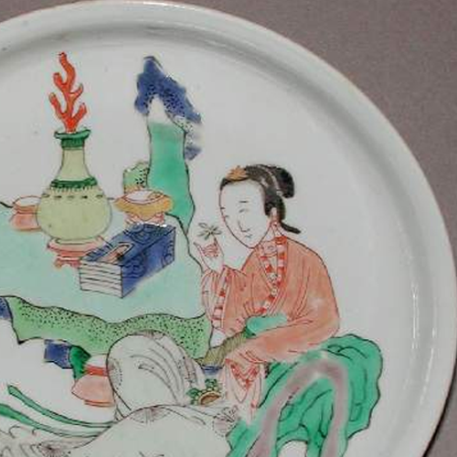 五彩仕女清供纹盘