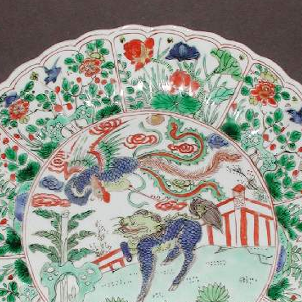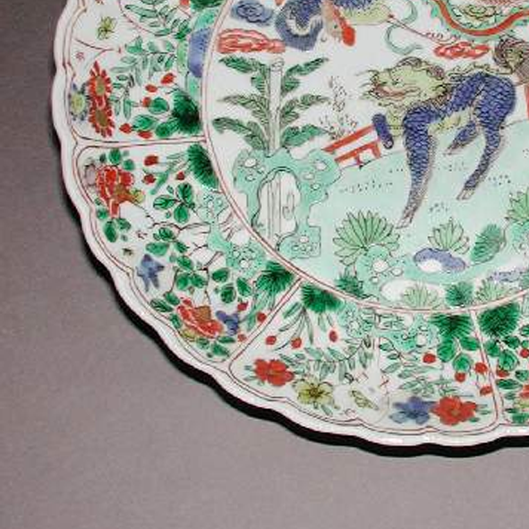 清代康熙至乾隆时期,是中国瓷器发展的黄金时代,制瓷工艺达到了登峰造极的境地。五彩瓷作为瓷器装饰的重要品类,在这一时期得到了进一步的创新和发展。当时,宫廷对瓷器的制作极为重视,不仅要求工艺精湛,对纹饰的题材和寓意也颇为讲究。瑞兽在传统文化中象征着吉祥、辟邪和守护,花卉则寓意着美好、繁荣和昌盛,这些纹饰的运用不仅满足了人们对美好生活的向往,也体现了当时的社会文化心理和审美观念。同时,随着海上丝绸之路的繁荣,清代瓷器大量出口到欧洲等地区,此类精美的五彩大盘成为了中西方文化交流的重要载体,让世界领略到中国瓷器艺术的独特魅力和深厚的文化底蕴。