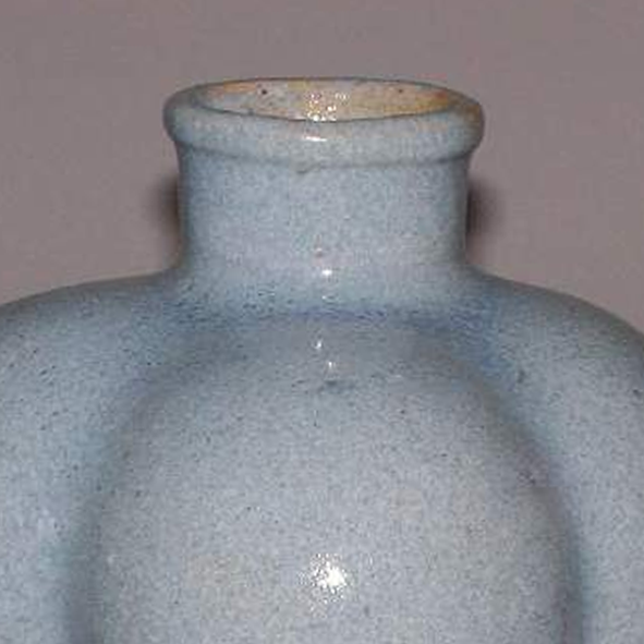 细节:瓶口边缘较为圆润,瓶身没有过多的装饰花纹,主要以独特的造型和优美的釉色取胜。在瓶身的转折处,釉色有微妙的浓淡变化,增添了几分层次感。器物底部有一些细微的烧制痕迹和使用过程中留下的磨损痕迹,见证了其岁月的沧桑。