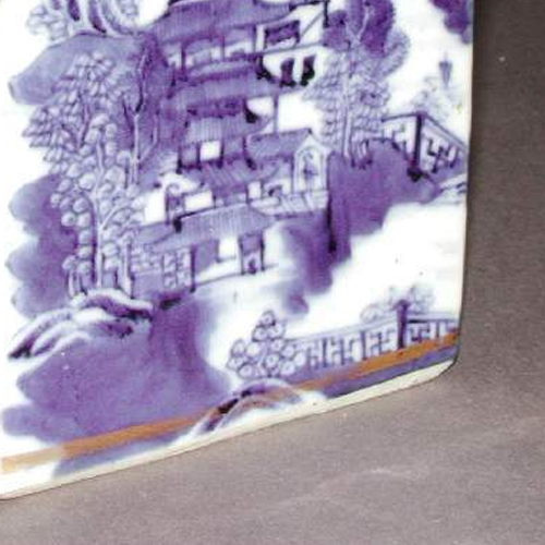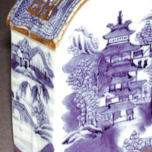 青花描金楼阁山水纹扁方鼻烟壶