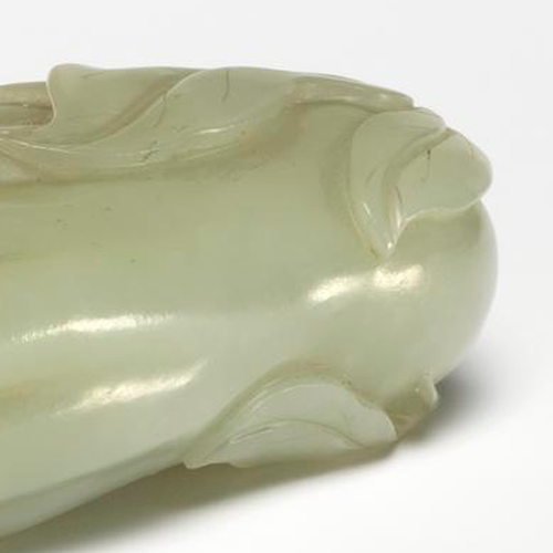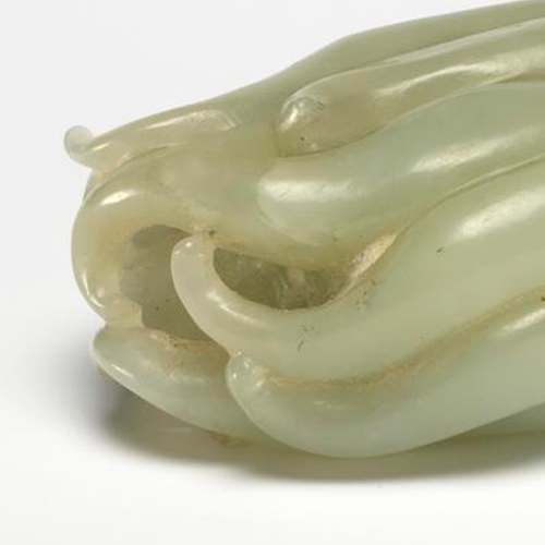 清代时期,玉器制作工艺达到了很高的水平,尤其是乾隆时期,社会稳定,经济繁荣,玉器的开采、雕琢和收藏都十分兴盛。皇室贵族对玉器极为喜爱,推动了玉器工艺的发展,出现了众多技艺精湛的工匠和精美的玉器作品。佛手在中国传统文化中有着吉祥的寓意,象征着幸福、福气,常被用于各类工艺品的造型设计中。玉器雕刻的佛手摆件不仅是精美的装饰品,还承载着人们对美好生活的向往和祝福。同时,清代的玉器贸易也较为发达,部分精品玉器流传到海外,成为传播中国玉文化的重要载体。