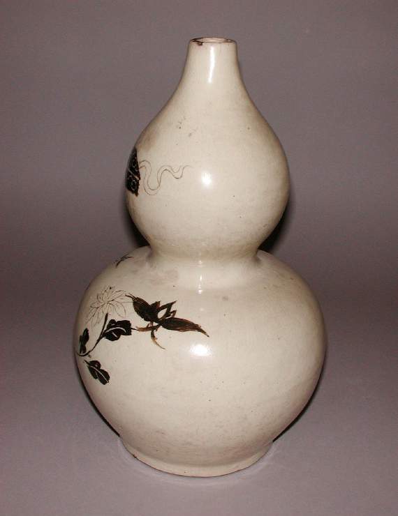 清代康熙 - 雍正时期,社会相对稳定,经济繁荣,制瓷业持续发展,达到了较高的水平。白釉瓷器在这一时期较为常见,褐彩作为一种传统的装饰彩料,常被用于瓷器装饰,以其古朴的色调受到部分人群的喜爱。葫芦瓶是中国传统的瓷器造型,因 “葫芦” 与 “福禄” 谐音,象征着福气和禄运,在民间广泛流传,常被用作陈设器和吉祥之物。花卉纹是中国传统瓷器装饰的常见题材,代表着美好、繁荣,反映了当时人们对美好生活的向往和追求。同时,这一时期的瓷器不仅满足国内需求,也有部分通过各种途径流传到海外,成为中外文化交流的载体之一。