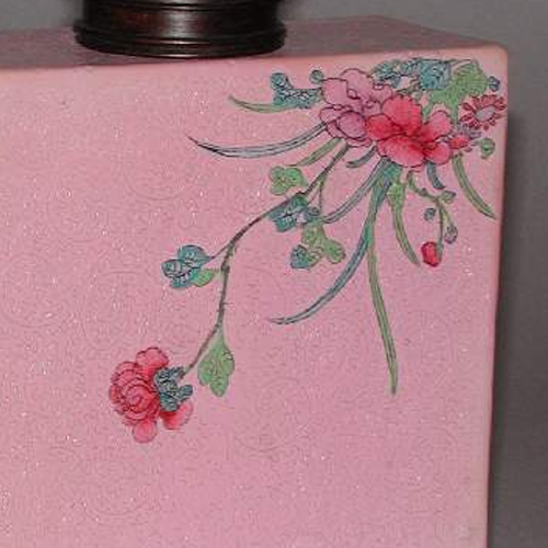 材质与色泽:以瓷土为胎体,质地较为细腻。瓶身表面施淡粉色釉,色彩柔和淡雅,具有一种温婉的美感。以粉彩工艺绘制花卉图案,色彩鲜艳丰富,有粉色、绿色、蓝色等,使得花卉图案栩栩如生,与粉色的底色形成鲜明对比,增添了器物的观赏性 。