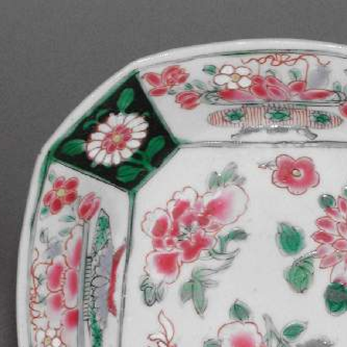 材质与色泽:以瓷土为胎体,质地较为细腻。盘身以白釉为底色,釉面温润洁白。采用粉彩工艺绘制花卉图案,色彩丰富艳丽,主要有粉色、绿色、黄色等。盘边缘及开光处的绿色釉彩色泽浓郁,与主体花卉的柔和色彩形成对比。