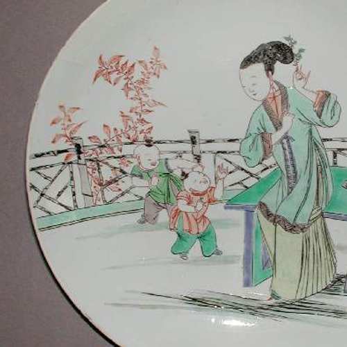 清代五彩仕女童子纹盘