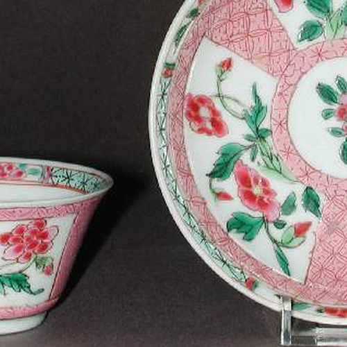 晚清至民国年间,中国内忧外患,社会秩序混乱,文物保护制度不完善。这套粉彩花卉纹杯盘套装可能原属于民间收藏,或为小型古董店铺的商品。外国文物贩子与国内的不法分子相互勾结,通过各种渠道低价收购此类文物,之后经由文物走私等非法途径将其贩卖到英国,最终被剑桥大学费茨威廉博物馆收藏。