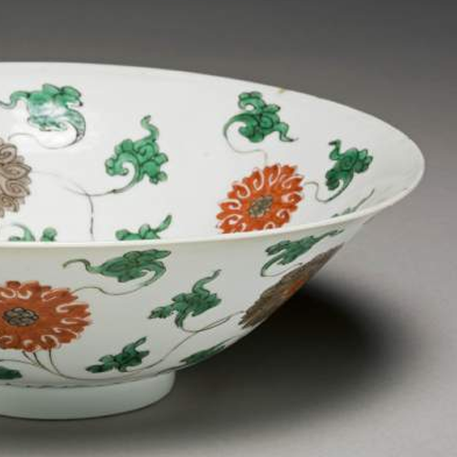 清代是中国瓷器发展的重要时期,五彩瓷器在明代的基础上进一步发展。康熙时期五彩瓷器达到了较高的艺术水准,色彩鲜艳,绘画精细。到了清晚期,虽然制瓷工艺相较于前期有所衰退,但民间制瓷业依然保持着一定的规模和活力。花卉题材在清代瓷器装饰中极为常见,缠枝花卉纹寓意着生生不息、富贵延绵,深受人们的喜爱。同时,晚清时期,由于列强的侵略和社会的动荡不安,大量中国瓷器通过贸易或非法手段流失海外,成为外国博物馆的藏品,这件五彩缠枝花卉纹碗就是这一历史背景下中国文物流失的一个例证。
