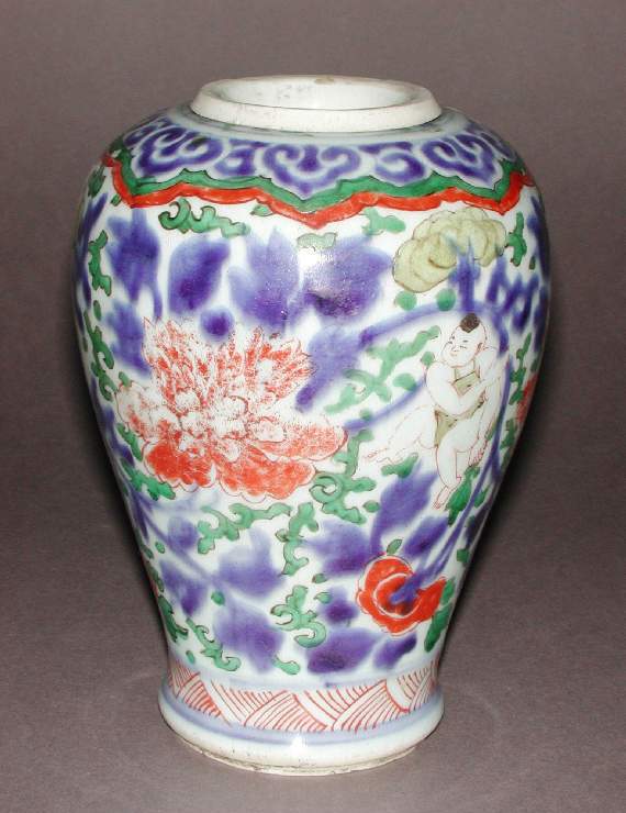 清代是中国瓷器发展的重要时期,五彩瓷器在明代的基础上进一步发展。康熙时期五彩瓷器达到较高水准,色彩鲜艳,绘画精细。清晚期,虽然制瓷工艺较前期有所衰退,但民间制瓷依然活跃。婴戏图和花卉纹在清代瓷器装饰中较为常见,婴戏图寓意着多子多福、生活美满,花卉纹则象征着吉祥美好。同时,晚清时期,由于列强入侵和社会动荡,大量中国瓷器通过贸易或非法途径流向海外,成为外国博物馆的藏品,这件五彩婴戏花卉纹罐就是近代中国文物流失的一个见证。