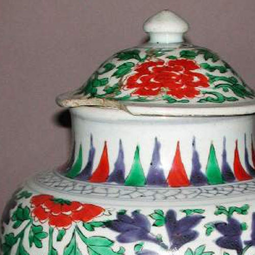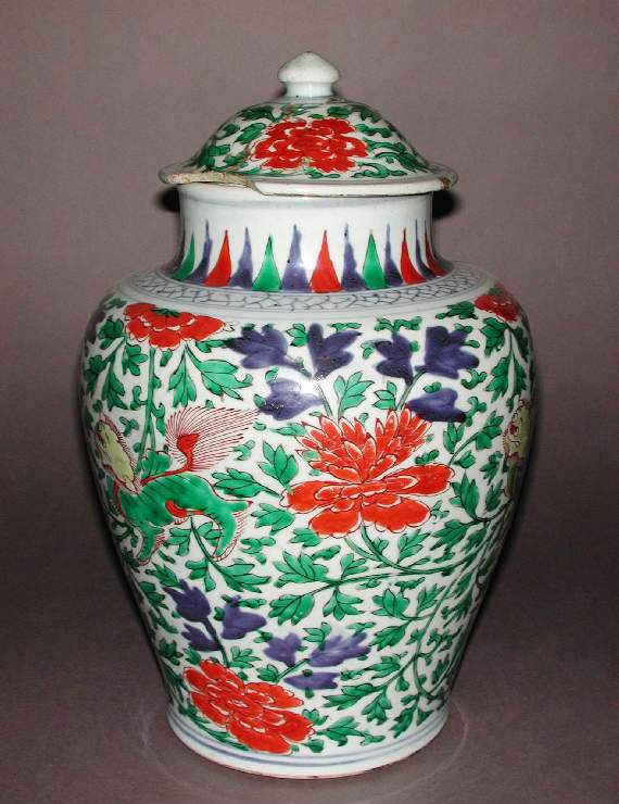 清代是中国瓷器发展的重要时期,五彩瓷器在明代基础上进一步发展。康熙时期五彩瓷器达到较高水准,色彩鲜艳,绘画精细。清晚期,虽然制瓷工艺较前期有所衰退,但民间制瓷依然活跃。瑞兽和花卉题材在清代瓷器装饰中较为常见,瑞兽寓意吉祥辟邪,花卉象征美好富贵。同时,晚清时期,由于列强入侵和社会动荡,大量中国瓷器通过贸易或非法途径流向海外,成为外国博物馆的藏品,这件五彩瑞兽花卉纹盖罐就是近代中国文物流失的一个见证。