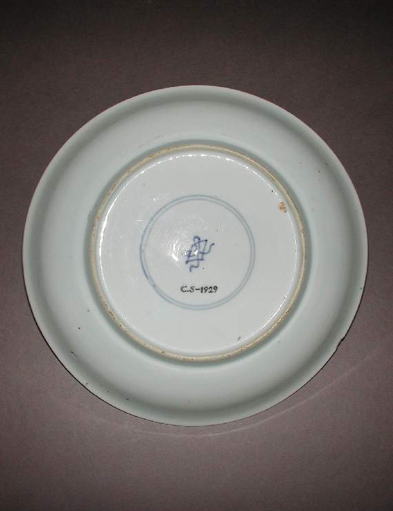 晚清至民国年间,中国内忧外患,社会秩序混乱,文物保护意识淡薄。这件五彩博古纹盘可能原属于民间收藏,或是小型古董店铺中的商品。外国文物贩子与国内的古董商、盗贼等相互勾结,通过低价收购等手段获取该盘,然后经由文物交易渠道,将其贩卖到英国,最终被剑桥大学费茨威廉博物馆收藏。