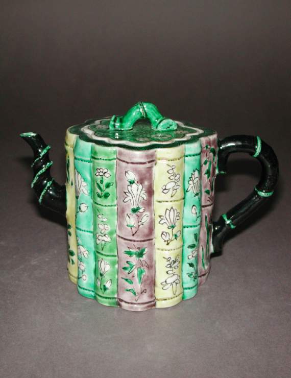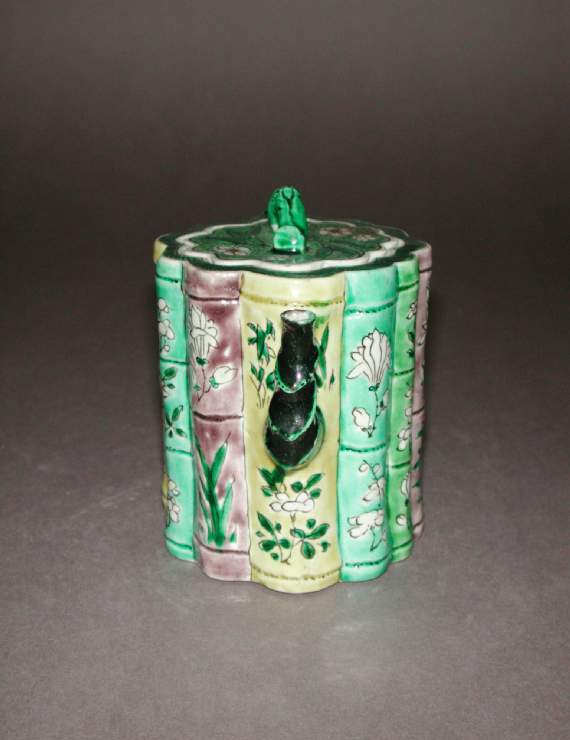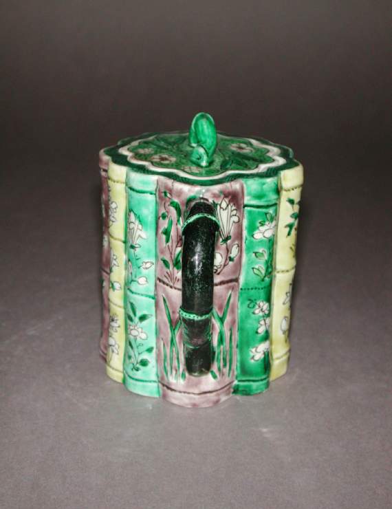 清代素三彩竹节花卉纹执壶