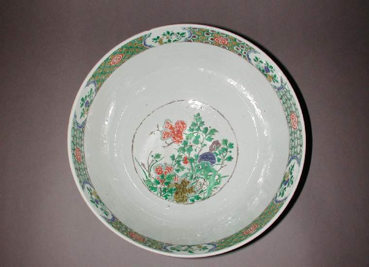 晚清至民国年间,中国内忧外患,社会秩序混乱,文物保护意识淡薄。这件五彩开光花卉纹大碗可能原属于民间收藏,或是小型古董店铺中的商品。外国文物贩子通过各种渠道与国内不法分子勾结,以低价收购后,经由文物走私等非法途径贩卖到英国,最终被剑桥大学费茨威廉博物馆收藏。