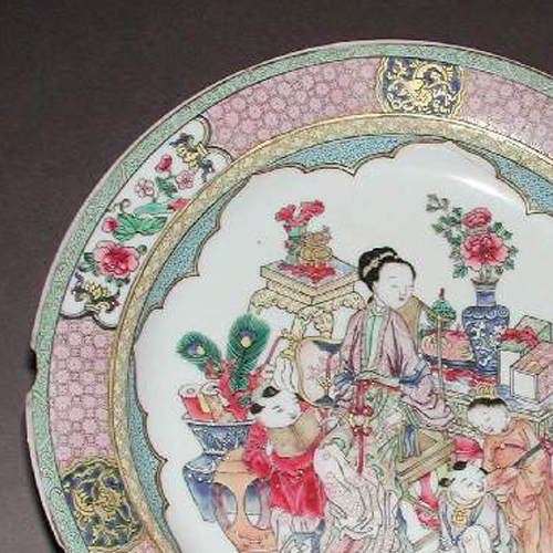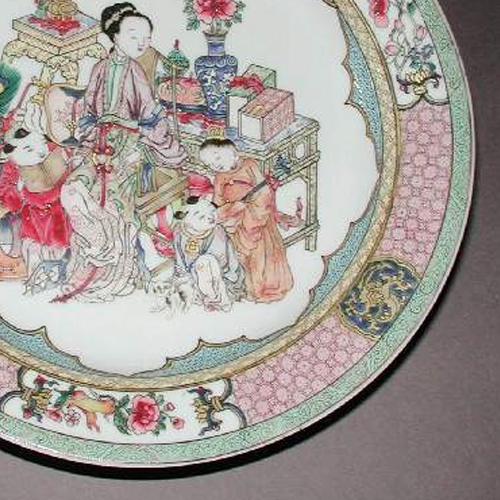 清代粉彩仕女婴戏纹盘