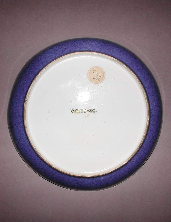 细节:盘内的描金图案较为抽象,似各种吉祥纹饰或云纹、兽纹等,分布错落有致。盘底较为光洁,有一些细微的磨损痕迹,还贴有收藏标签,标注有相关收藏信息,如 “O.C.23-39” 等,显示出其流传经历。