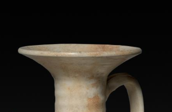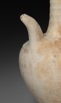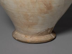 本品规格为口径13.8厘米,高度29.9厘米。整体造型端庄规整,壶身呈修长的瓶状,喇叭形的口部外撇,线条舒展。颈部修长,连接着圆润饱满的腹部,腹部向下逐渐收束,底部为圈足。壶身一侧设有弯曲的长流,另一侧配有环形执柄,方便持握与倾倒。器身施白釉,虽历经岁月,釉面有部分磨损、泛黄及土沁痕迹,却更显古朴韵味,展现出北宋时期白瓷简洁素雅的审美风格与制瓷工艺水平。
