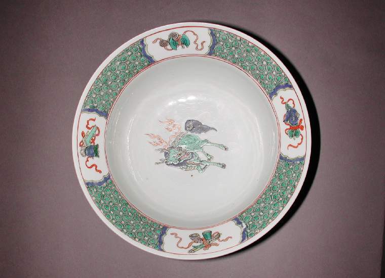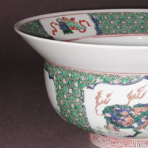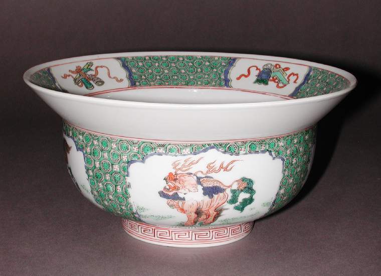 清代五彩瑞兽博古纹大碗