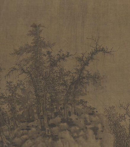 本品规格为184.5 x 56.1 厘米。采用立轴装裱形式,整体呈现出典型的北宋山水画风貌。画面以山水为主题,远处山峦巍峨,山体轮廓与纹理通过细腻的笔墨勾勒、皴擦,展现出山石的质感与层次,仿佛云雾缭绕其间,营造出空灵悠远的意境。近处可见树木、坡石等景致,树木形态各异,或挺拔或虬曲,坡石的刻画也颇具质感,与远处山水相呼应,构建出完整的山水空间。笔墨运用上,遵循北宋山水画注重写实与意境营造的特点,通过墨色的浓淡变化、线条的刚柔相济,将山水的雄浑与清幽巧妙融合,传递出北宋文人对自然山水的体悟与审美追求,是研究北宋山水画艺术的重要实物资料。