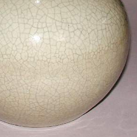 细节:瓶口较为窄小,上下球体的衔接处过渡自然。圈足处的胎质略显粗糙,与细腻的釉面形成对比。瓶身的开片纹纵横交错,有的呈不规则的块状,有的则是细长的线条状,增加了器物的艺术韵味。