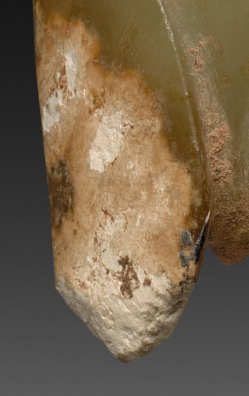在东周时期,玉器常被制作成各种造型的配饰。这件玉蝉形饰件可能被用绳子穿系起来, 作为组玉佩的一部分,佩戴在身上, 如挂于腰间、胸前等位置。蝉在传统文化中有高洁、重生等寓意,佩戴玉蝉饰件不仅具有装饰作用,还能彰显佩戴者对美好品质的追求 。