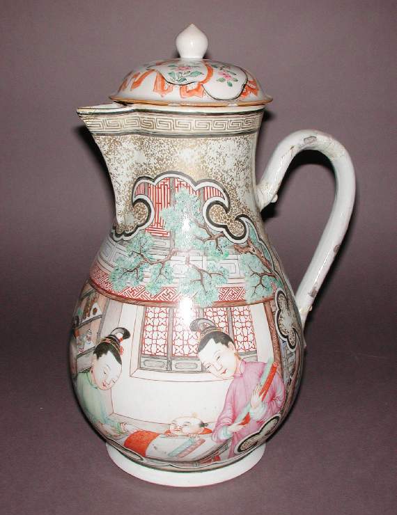 清代广彩人物故事纹带盖执壶