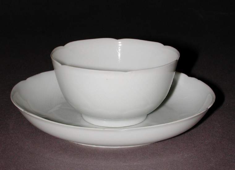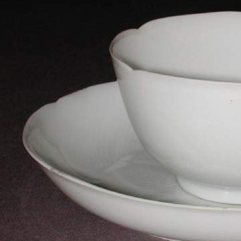 清代白釉花口杯碟套装