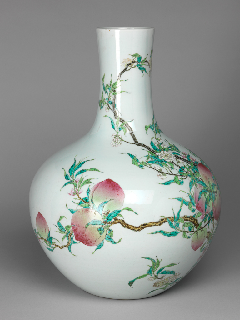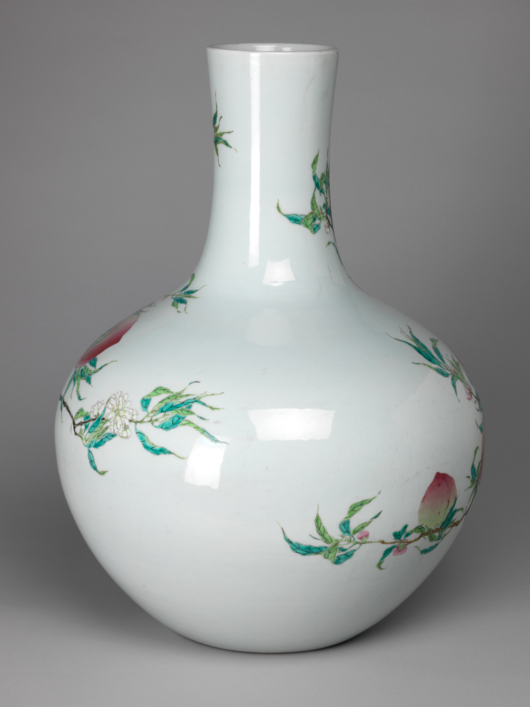 清代粉彩寿桃纹天球瓶