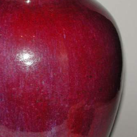 材质与色泽:以瓷土为胎体,质地较为细腻。通体施霁红釉,釉色深沉浓艳,呈现出鲜艳的深红色,釉面光泽莹润,在光线照射下,闪烁着柔和的光泽,且釉色有一定的层次感,部分区域呈现出紫红交融的色泽变化,尽显古朴典雅之美。