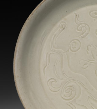 金代定窑白釉印花蟠螭纹盘