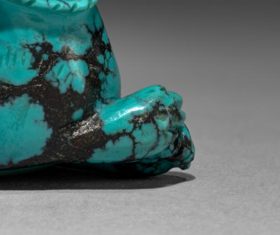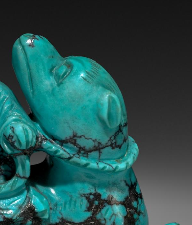 明代时期, 富贵人家或文人雅士常将精美的工艺品摆放在书房、客厅等室内空间。 这件绿松石童子骑兽摆件, 以其独特的材质、精巧的造型和明快的色泽, 成为室内的装饰亮点, 为空间增添艺术氛围和生活情趣 。它可以放置在案头、博古架上, 供主人及宾客欣赏, 彰显主人的高雅品味和审美情趣 。