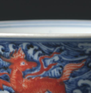 明代青花矾红海水瑞兽纹高足杯