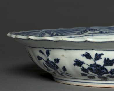 明代青花花卉纹菱口盘