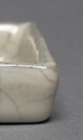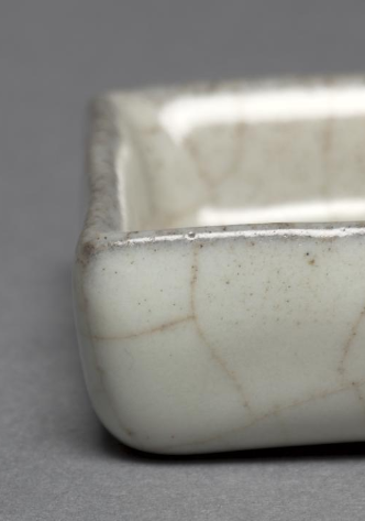 作为洗类瓷器,它最主要的用途是在文房之中用于清洗毛笔。南宋时期,文人阶层重视书法、绘画等艺术创作,书写绘画完毕后需要清洗毛笔, 官窑四方倭角洗的大小和形状 ,适合盛水以方便洗笔,保持毛笔洁净,利于下次使用。